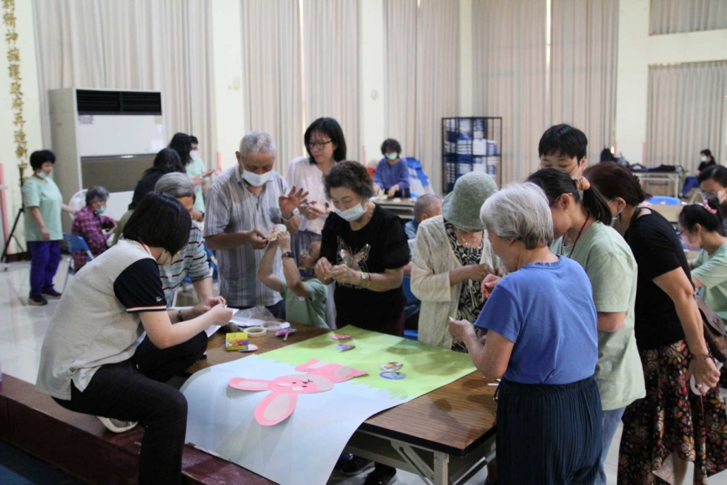 展翅高飛社區日間作業設施(以下簡稱岡山小作所)4月14日上午前往國軍退除役官兵輔導委員會岡山榮譽國民之家,辦理「看見彼此的光-身障者生命教育共融」活動,由6位服務帶領長輩,以和諧粉彩共同創作彩蛋小卡,在溫馨互動中傳遞節慶祝福。