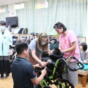 王母感動表示:「感謝大岡山早療中心協助媒合相關單位介入服務,讓孩子能有一張符合身體需求的輪椅,我的照顧壓力也少了很多。」