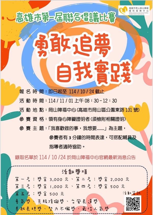 - 地點:岡山障福中心(高雄市岡山區公園東路131號)