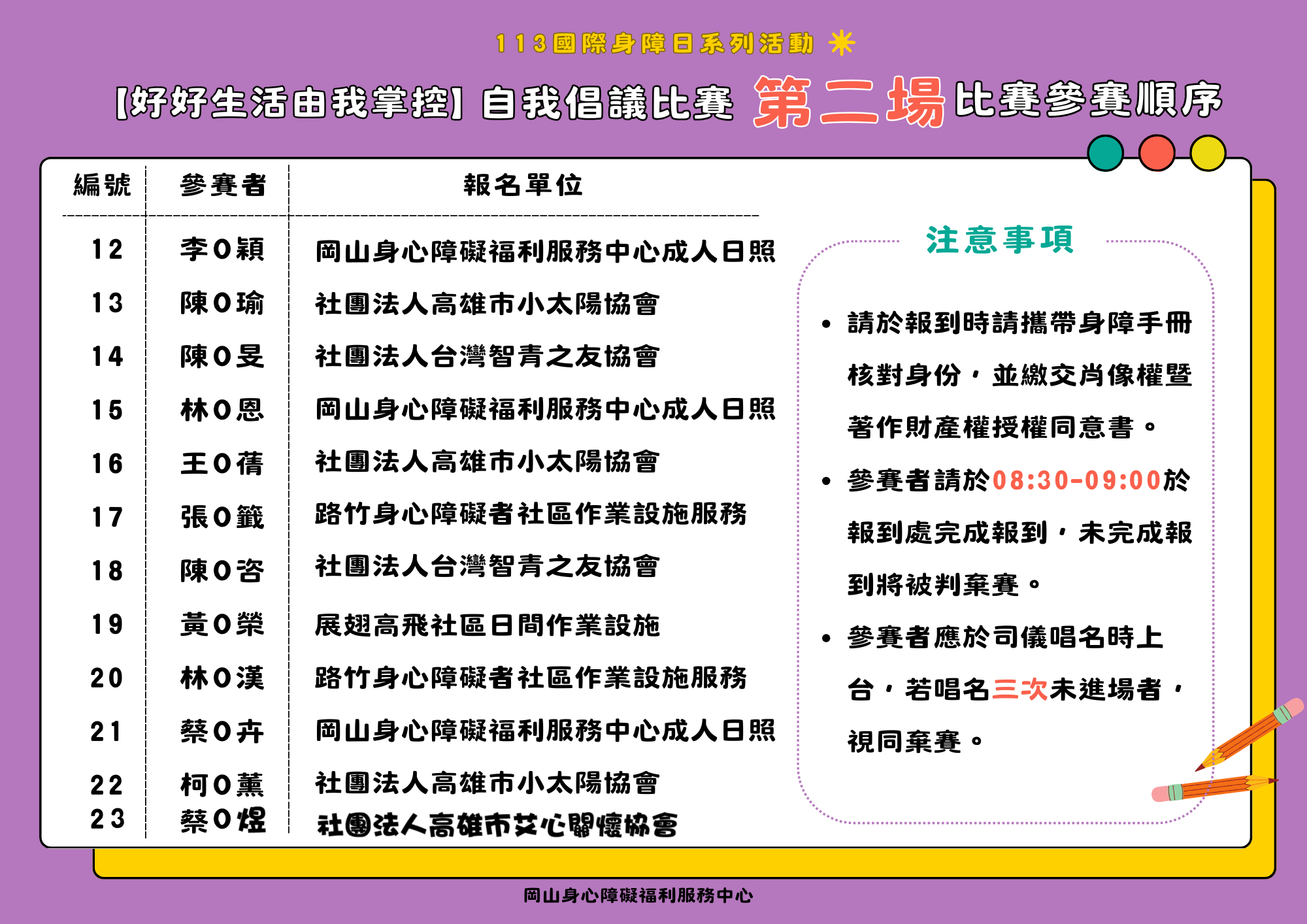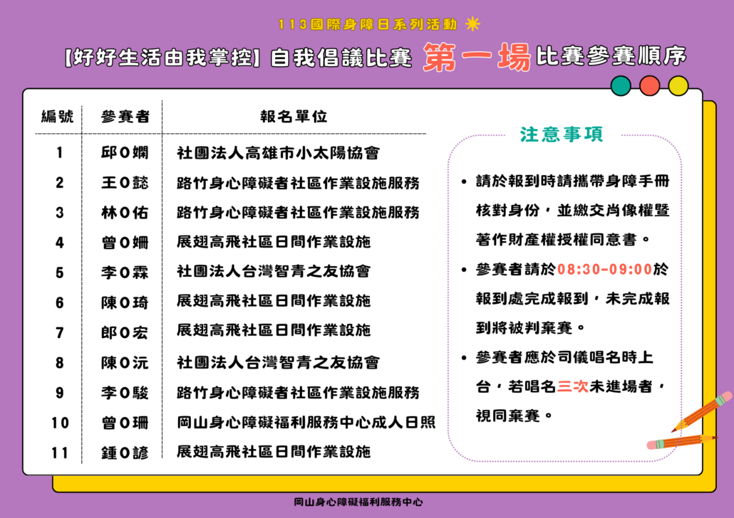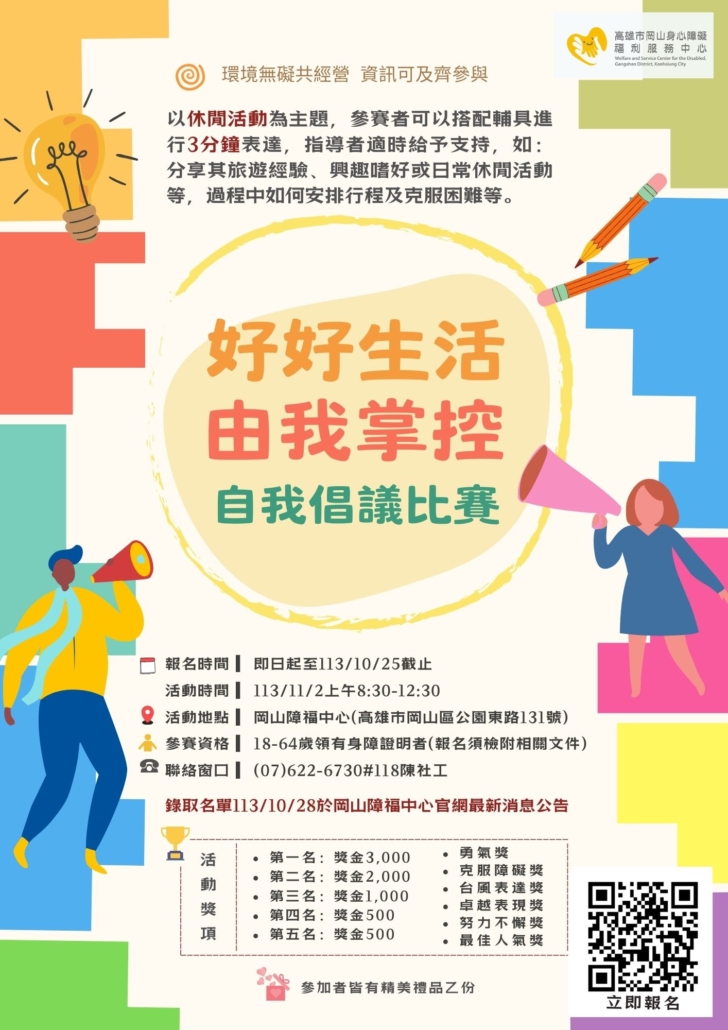 特別提醒:11/2 (六)國際身障日系列活動——自我倡議比賽 將如期舉行,歡迎大家前來參加,共襄盛舉!