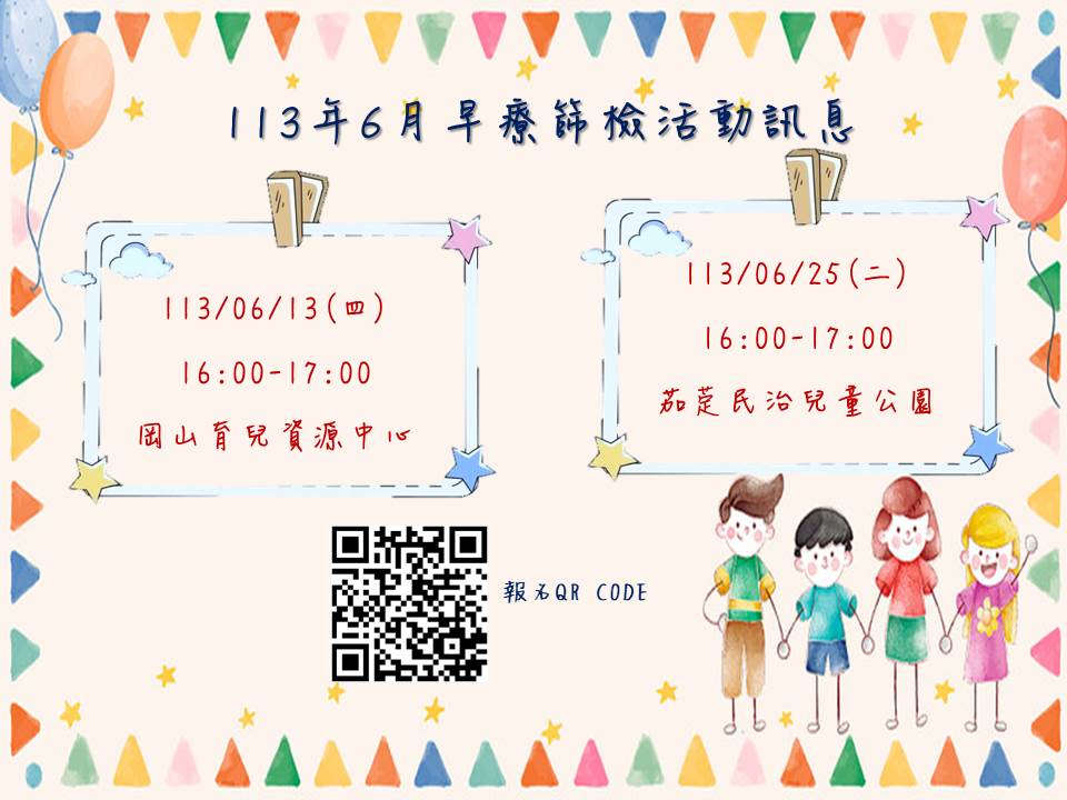 6月份我們即將來去岡山、茄萣辦理0~6歲早療遊戲篩檢活動,歡迎大家踴躍報名,每個小朋友約有20分鐘的互動時間,也歡迎爸爸、媽媽提出問題與社工討論。離開前還可以拿小禮物唷!活動採報名制,因名額有限,請大家提前來電或是掃QR Code報名,若報名額滿網路表單就會關閉,不再接收報名,有任何問題歡迎來電洽詢:(07)6226730#156陳社工。