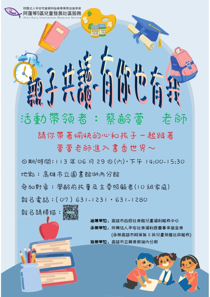 - 地點:高雄市立圖書館湖內分館(高雄市湖內區保生路101號)