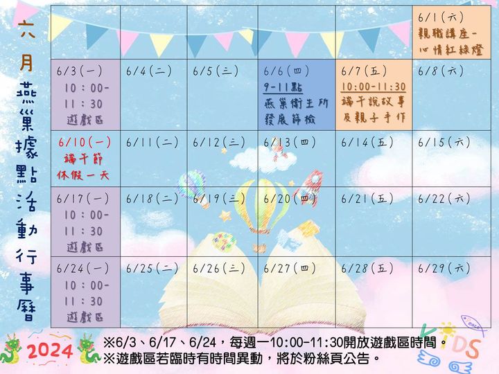 113/6/8(六)-6/10(一)為端午節連續假期,中心休館三天,6/11(二)開始提供服務,造成不便盡請見諒。