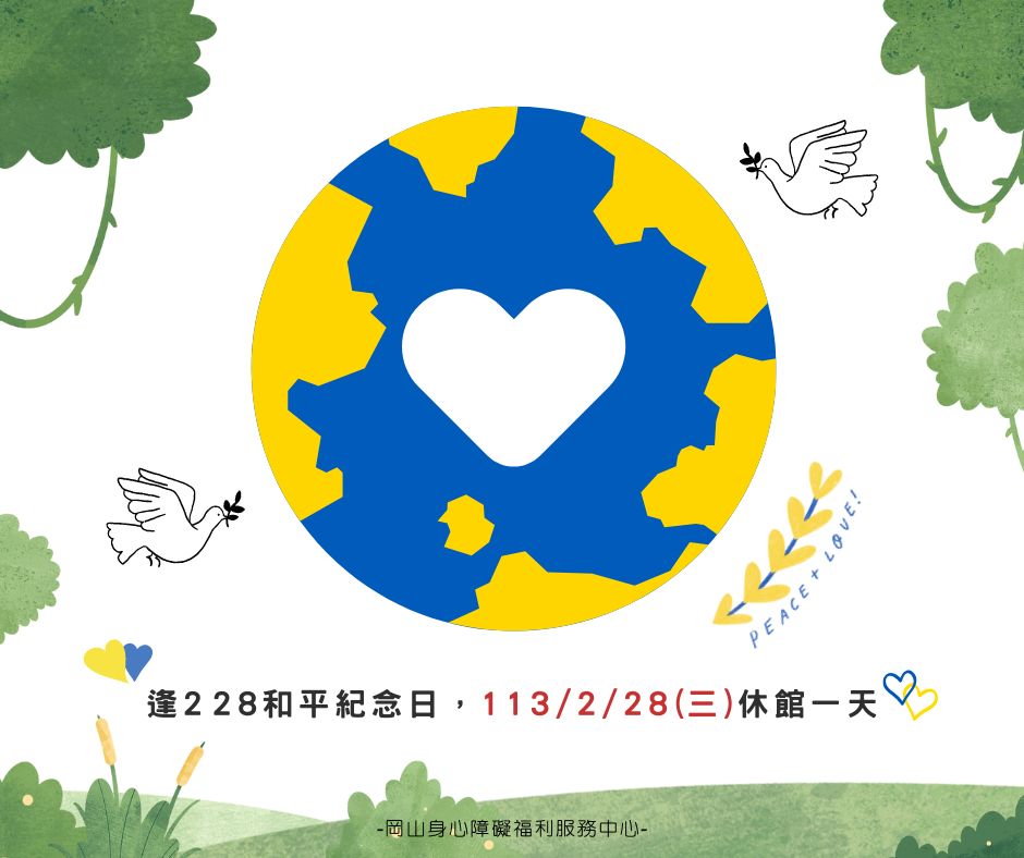 113/2/28(三)為和平紀念日連續假期,中心休館一日,2/29(四)開始提供服務,造成不便盡請見諒。