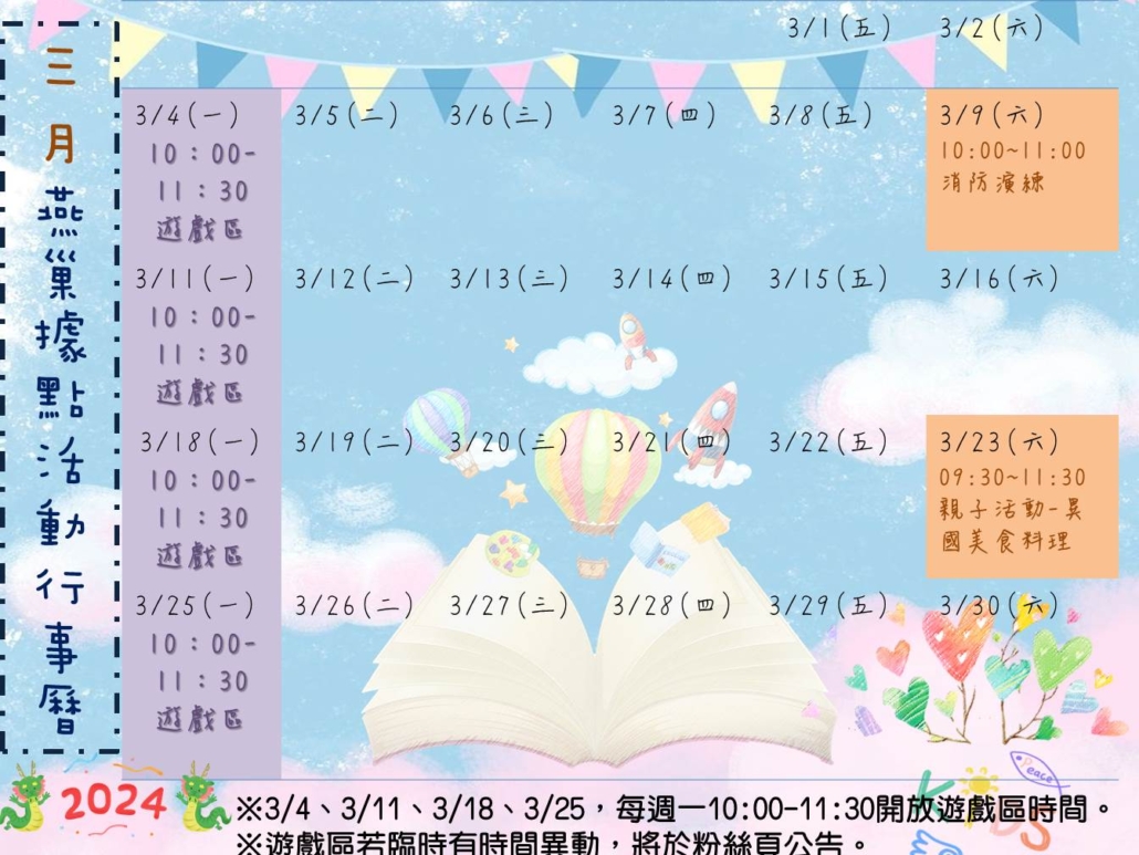 【公告】113年3月份燕巢社區遊戲站開放時間