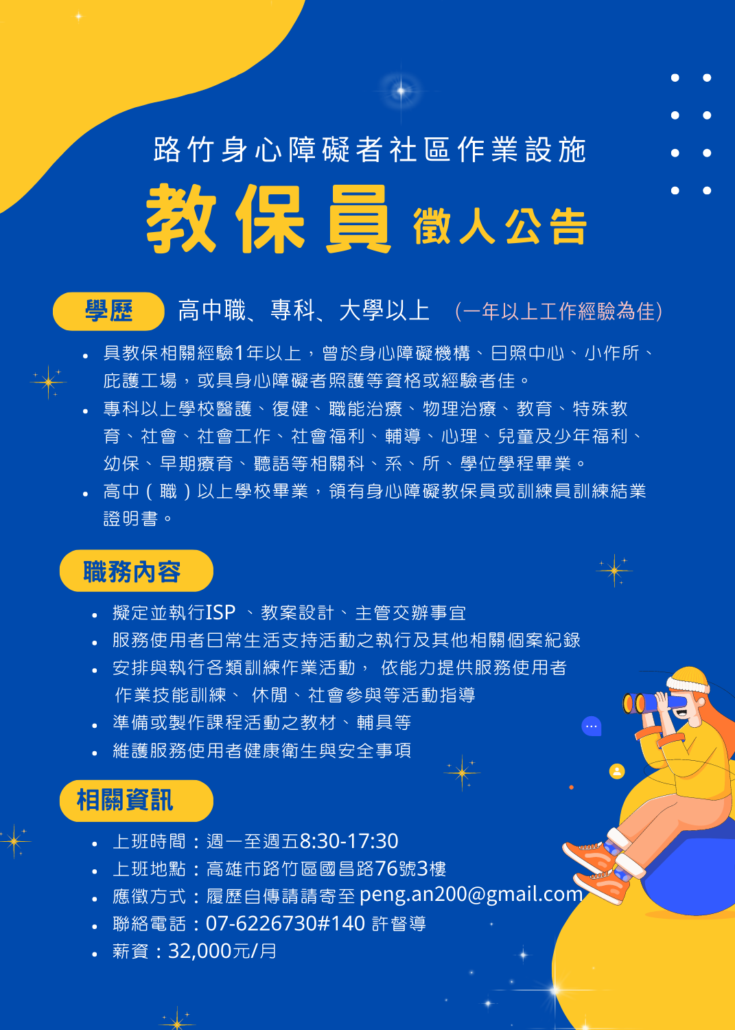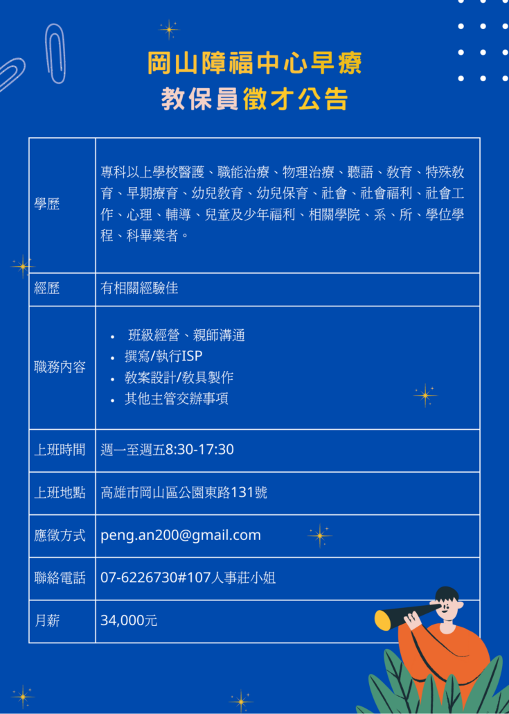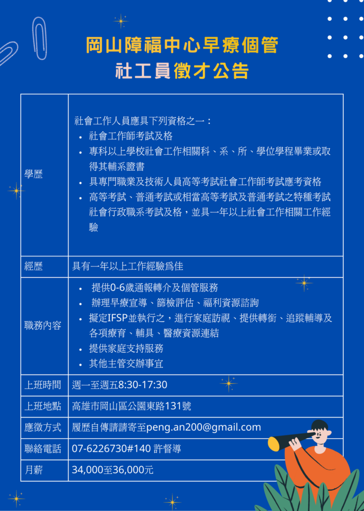 有任何問題歡迎來電洽詢:(07)6226730#156陳社工