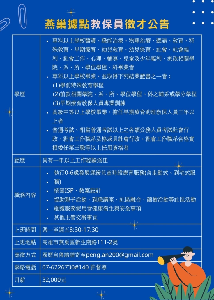 地點:燕巢兒童發展社區服務(高雄市燕巢區新生南路111之2號)
