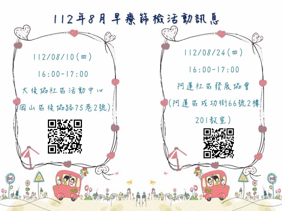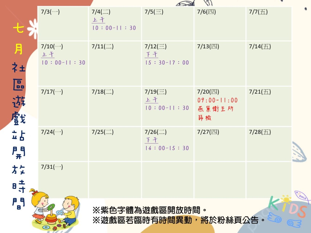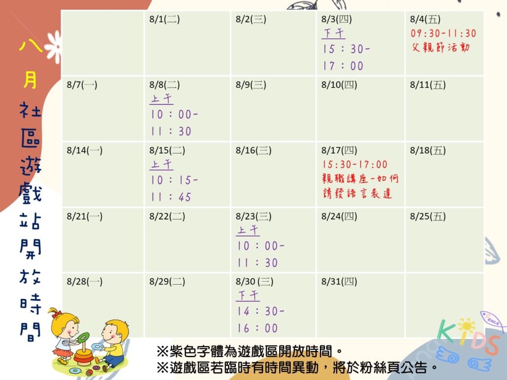 【公告】112年8月份燕巢社區遊戲站開放時間