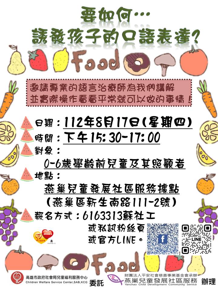 時間若臨時有異動,將於燕巢兒童發展社區服務粉絲頁公告~
