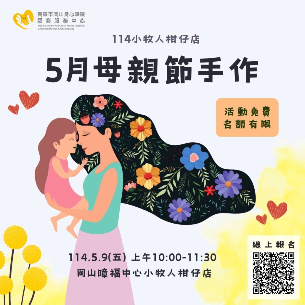 小牧人柑仔店將於4月份特別規劃復活節限定手作DIY,讓參與者透過親手創作,了解復活節的文化與寓意。邀請民眾一同感受春天溫暖與節日的歡樂,活動免費參加,名額有限,歡迎有興趣的民眾掃描QR CODE提前報名,如有任何疑問,歡迎致電(07)622-6730#213歐社工。